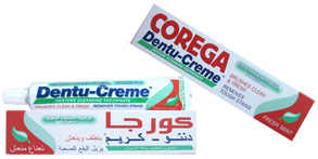 - معاجين مختلفة التركيز لتثبيت الاسنان الاصطناعية.